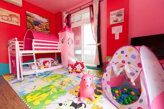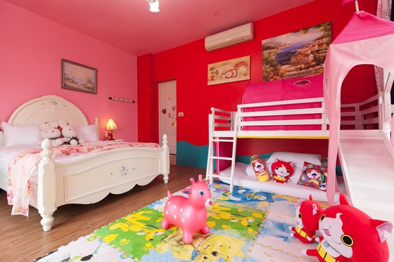 充滿少女心的粉紅色系,浪漫柔和,繽紛豐富的遊戲空間,外頭還設有景觀陽台,好好享受親子相聚的難得時光吧!
